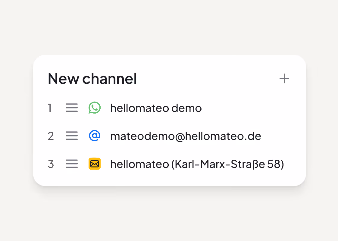 With hellomateo, you can automatically control your entire customer communication throughout the entire life cycle via WhatsApp, email and letter. From initial contact to reactivation years later. Event-driven, data-based and tailored exactly to your industry.